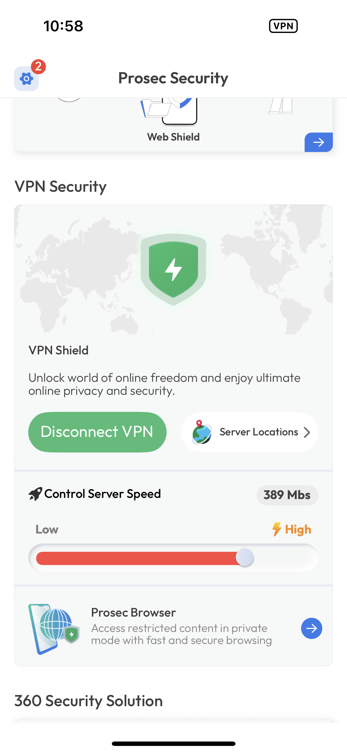 Open the PROSEC app and check the VPN status indicator—it should say “Connected.”