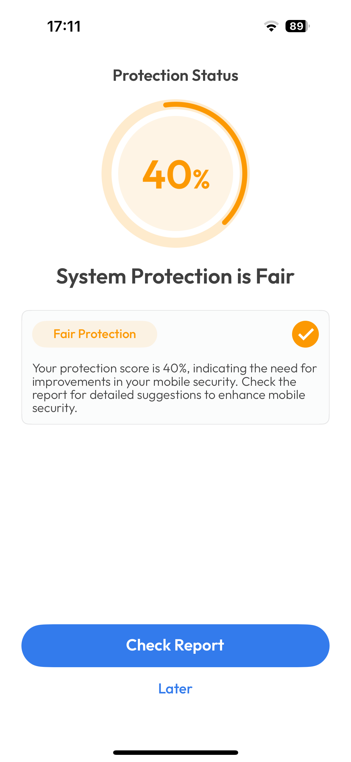 A dynamic score reflecting your device's security level based on your usage of the app's features. Regular use of tools like Wi-Fi Scan, Identity Protection, System Scan, and VPN can improve this score.Wi-Fi Scan